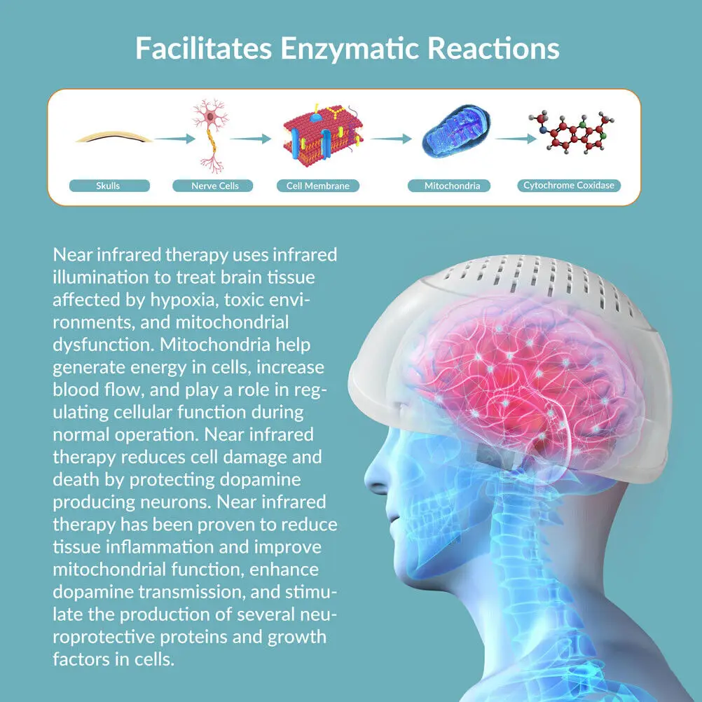Advanced 810nm Near-Infrared Therapy β Uses photobiomodulation (PBM) light to stimulate cellular energy, circulation, and brain activity
