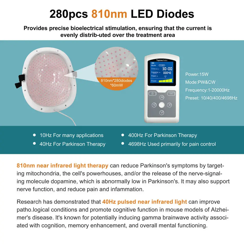 Powerful 280-Diode Light System β Delivers consistent deep-penetrating NIR therapy for whole-brain support