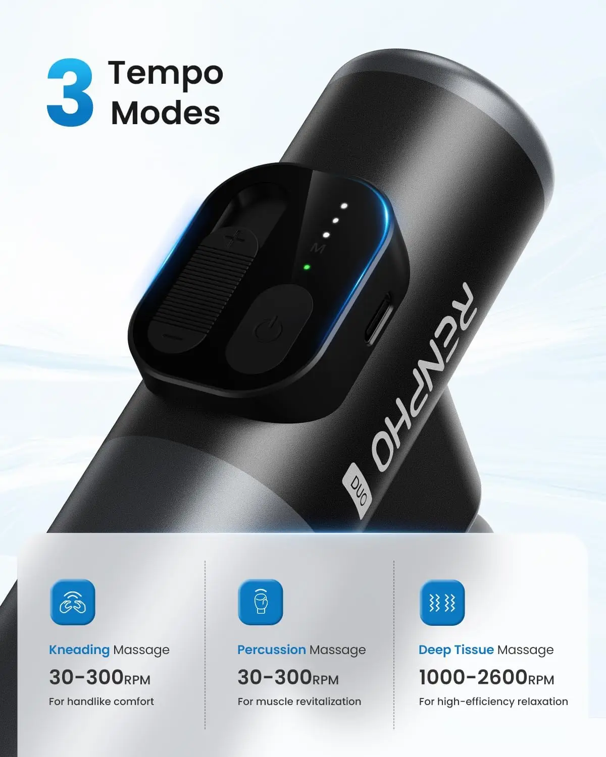 3 Adjustable Intensity Modes – Fine-tune pressure from gentle relaxation to intense muscle therapy
